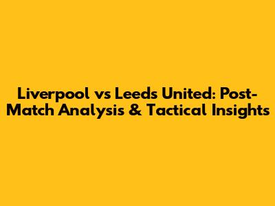 Liverpool Vs Leeds United: Post-Match Analysis & Tactical Insights
