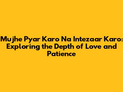 "Mujhe Pyar Karo Na Intezaar Karo" reminds us that love and patience are not mutually exclusive. They are two sides of the same coin, both essential in creating healthy and fulfilling relationships. The key is to understand when to express your desires and when to exercise restraint, always keeping in mind the other person's feelings and needs.