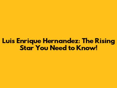 Luis Enrique Hernandez: The Rising Star You Need To Know!