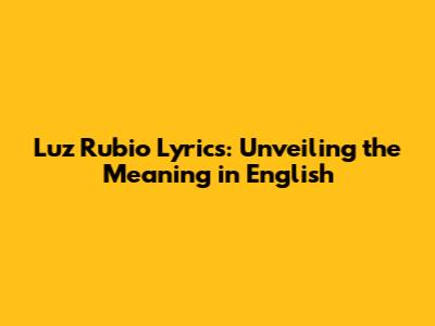 Luz Rubio Lyrics: Unveiling The Meaning In English