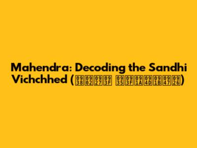 Unraveling "Mahendra" and Sandhi Vichchhed