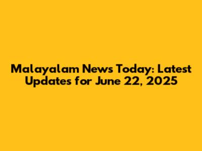 Malayalam News Today: Latest Updates For June 22, 2025