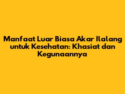Akar ilalang adalah tanaman yang kaya akan khasiat bagi kesehatan. Meskipun sering dianggap sebagai gulma, manfaat akar ilalang sangatlah beragam, mulai dari mengatasi masalah saluran kemih, menurunkan demam, menjaga kesehatan ginjal, hingga sebagai antioksidan. Dengan memanfaatkan akar alang-alang secara bijak, Anda dapat menjaga kesehatan tubuh secara alami. Jadi, jangan ragu untuk mencoba memanfaatkan akar ilalang sebagai bagian dari gaya hidup sehat Anda. Namun, selalu ingat untuk berkonsultasi dengan dokter atau ahli herbal jika Anda memiliki kondisi kesehatan tertentu atau sedang mengonsumsi obat-obatan. Kesehatan adalah investasi berharga, dan akar ilalang bisa menjadi salah satu aset berharga dalam perjalanan menuju kesehatan yang optimal.
