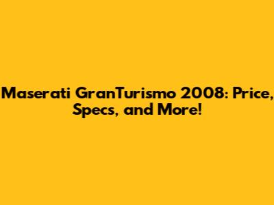 Maserati GranTurismo 2008: Price, Specs, And More!