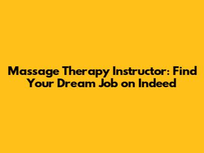 Massage Therapy Instructor: Find Your Dream Job On Indeed