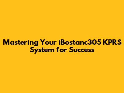 Mastering Your IBostanc305 KPRS System For Success