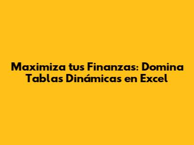 Maximiza Tus Finanzas: Domina Tablas Dinámicas En Excel