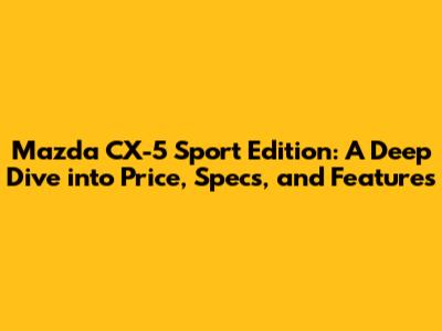 Mazda CX-5 Sport Edition: Price, Specs, And Features