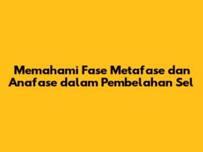 Memahami Fase Metafase Dan Anafase Dalam Pembelahan Sel