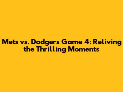 Mets Vs. Dodgers Game 4: Epic Moments & Highlights