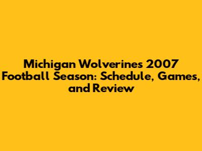 Michigan Wolverines 2007 Football Season: Schedule, Games, And Review