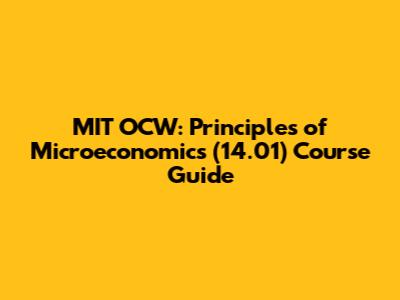 MIT OCW: Principles Of Microeconomics (14.01) Course Guide
