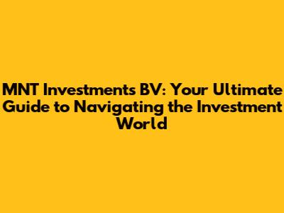 MNT Investments BV: A Comprehensive Guide To Investing