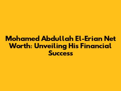 In conclusion, Mohamed Abdullah El-Erian is a highly accomplished individual whose career and achievements have significantly impacted the financial world. While the exact Mohamed Abdullah El-Erian net worth remains private, it is clear that his leadership roles, investment acumen, and contributions to economic thought have led to substantial financial success. His journey serves as an inspiration for aspiring professionals and highlights the importance of education, experience, and strategic thinking in achieving success in the finance industry.
