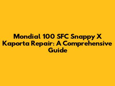 Understanding the Mondial 100 SFC Snappy X Kaporta