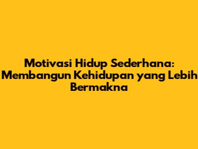 Motivasi hidup sederhana adalah fondasi penting untuk mencapai kebahagiaan sejati. Di dunia yang terus-menerus mendorong kita untuk memiliki lebih banyak, menjadi lebih kaya, dan mengejar kesuksesan yang seringkali diukur dari materi, hidup sederhana menawarkan jalan keluar yang menyegarkan. Ini bukan tentang kemiskinan atau penolakan terhadap kenyamanan, tetapi tentang memilih fokus pada apa yang benar-benar penting dalam hidup. Hidup sederhana memungkinkan kita untuk membebaskan diri dari belenggu keinginan yang tak terbatas dan menemukan kepuasan dalam hal-hal yang paling mendasar dan bermakna. Jadi, mari kita selami dunia motivasi hidup sederhana dan temukan bagaimana kita dapat membangun kehidupan yang lebih kaya, lebih bahagia, dan lebih bermakna.