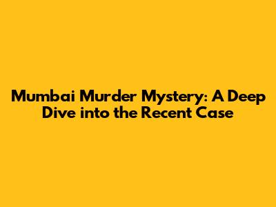 Mumbai Murder Mystery: A Deep Dive Into The Recent Case
