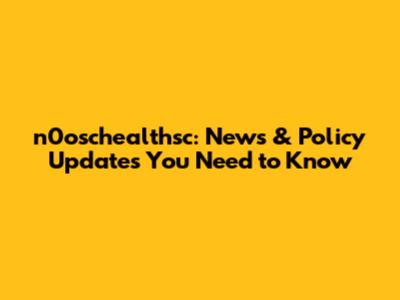 N0oschealthsc: News & Policy Updates You Need To Know
