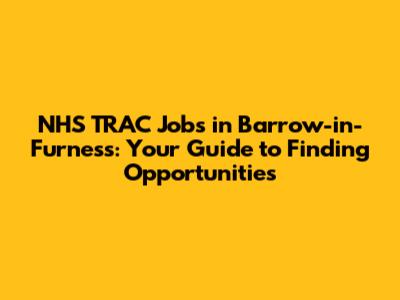 NHS Jobs: Find TRAC Jobs In Barrow-in-Furness