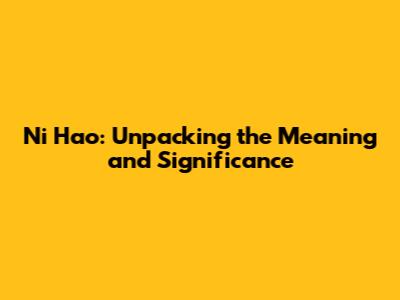 Ni Hao: Unpacking The Meaning And Significance