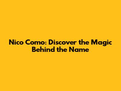 Nico Como: Discover The Magic Behind The Name