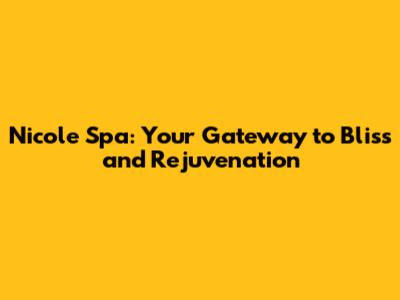 Nicole Spa: Your Gateway To Bliss And Rejuvenation