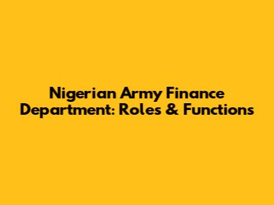 Nigerian Army Finance Department: Roles & Functions