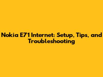 Nokia E71 Internet: Setup, Tips, And Troubleshooting