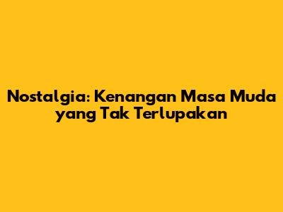 Nostalgia: Kenangan Masa Muda Yang Tak Terlupakan