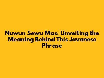 Nuwun Sewu Mas: Unveiling The Meaning Behind This Javanese Phrase