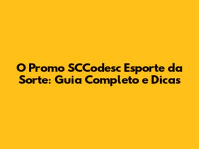 O Promo SCCodesc Esporte Da Sorte: Guia Completo E Dicas