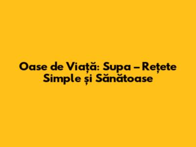Oase De Viață: Supa – Rețete Simple Și Sănătoase