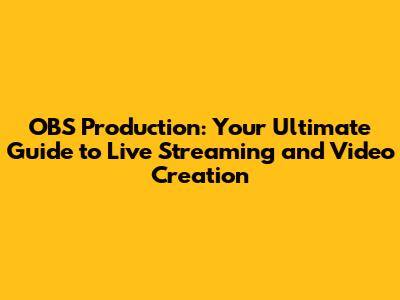 OBS Production: Your Ultimate Guide