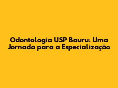 Odontologia USP Bauru: Especialização E Oportunidades