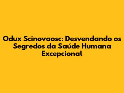 Odux Scinovaosc: Guia Completo Para Uma Saúde Humana Excepcional