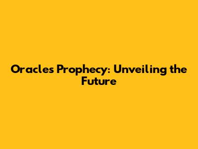 Oracle's Prophecy: Unveiling The Future