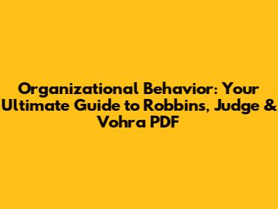 Organizational Behavior: Robbins, Judge & Vohra PDF Guide