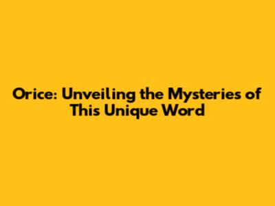 Orice: Unveiling The Mysteries Of This Unique Word