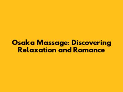 Osaka Massage: Discovering Relaxation And Romance
