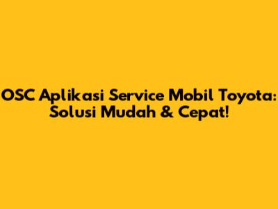 OSC Aplikasi Service Mobil Toyota: Solusi Mudah & Cepat!