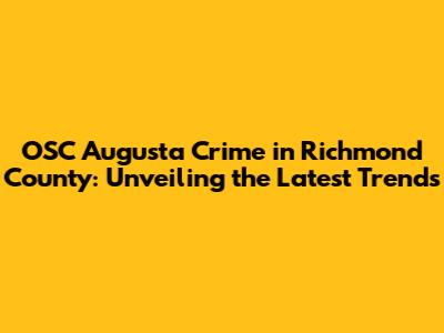 OSC Augusta Crime In Richmond County: Latest News & Insights
