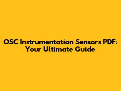 OSC Instrumentation Sensors PDF: Your Ultimate Guide
