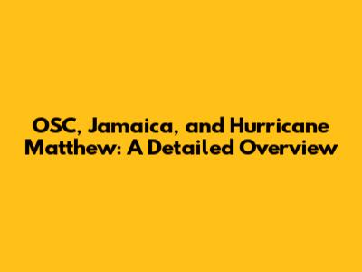OSC, Jamaica, And Hurricane Matthew: A Detailed Overview
