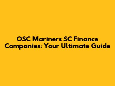 OSC Mariners SC: Your Guide To Finance Companies