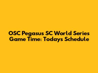 OSC Pegasus SC World Series Game Time: Today's Schedule