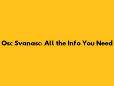 Osc Svanasc: All The Info You Need