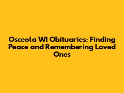 Osceola WI Obituaries: Find Recent Death Notices
