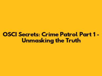 OSCI Secrets: Crime Patrol Part 1 - Unmasking The Truth