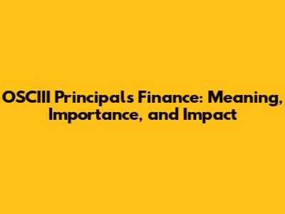 OSCIII Principals Finance: Meaning, Importance, And Impact