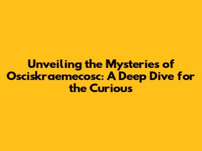 Unveiling the Mysteries of Osciskraemecosc: A Deep Dive for the Curious